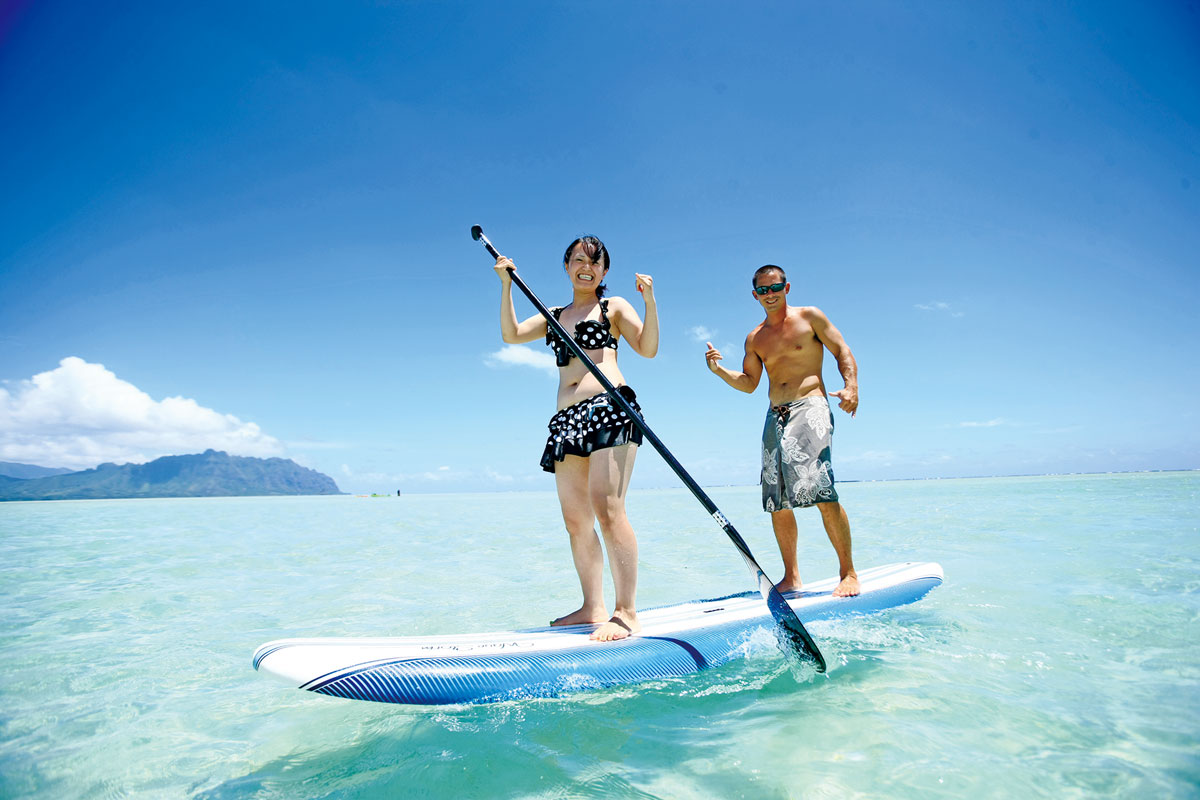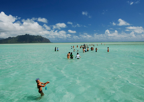 テレビCMなどでもお馴染みのサンドバー。白い砂浜とエメラルドグリーンが広がる、まさに“天国の海”。ハワイ諸島で唯一バリアリーフが形成している場所です。また、カネオへ湾をキャプテン・ブルースがご案内!数々の撮影に使われるほどの景色は忘れられない思い出となるでしょう。深さ約1mの浅瀬なのでお子様も安心して参加できます!モデル気分で撮影してみては?!