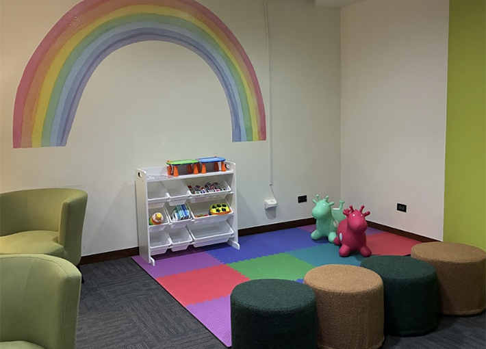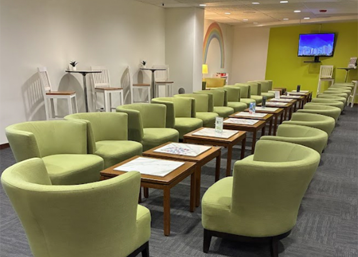You can enjoy free snacks and drinks, WiFi, ipad station, and kids space.
