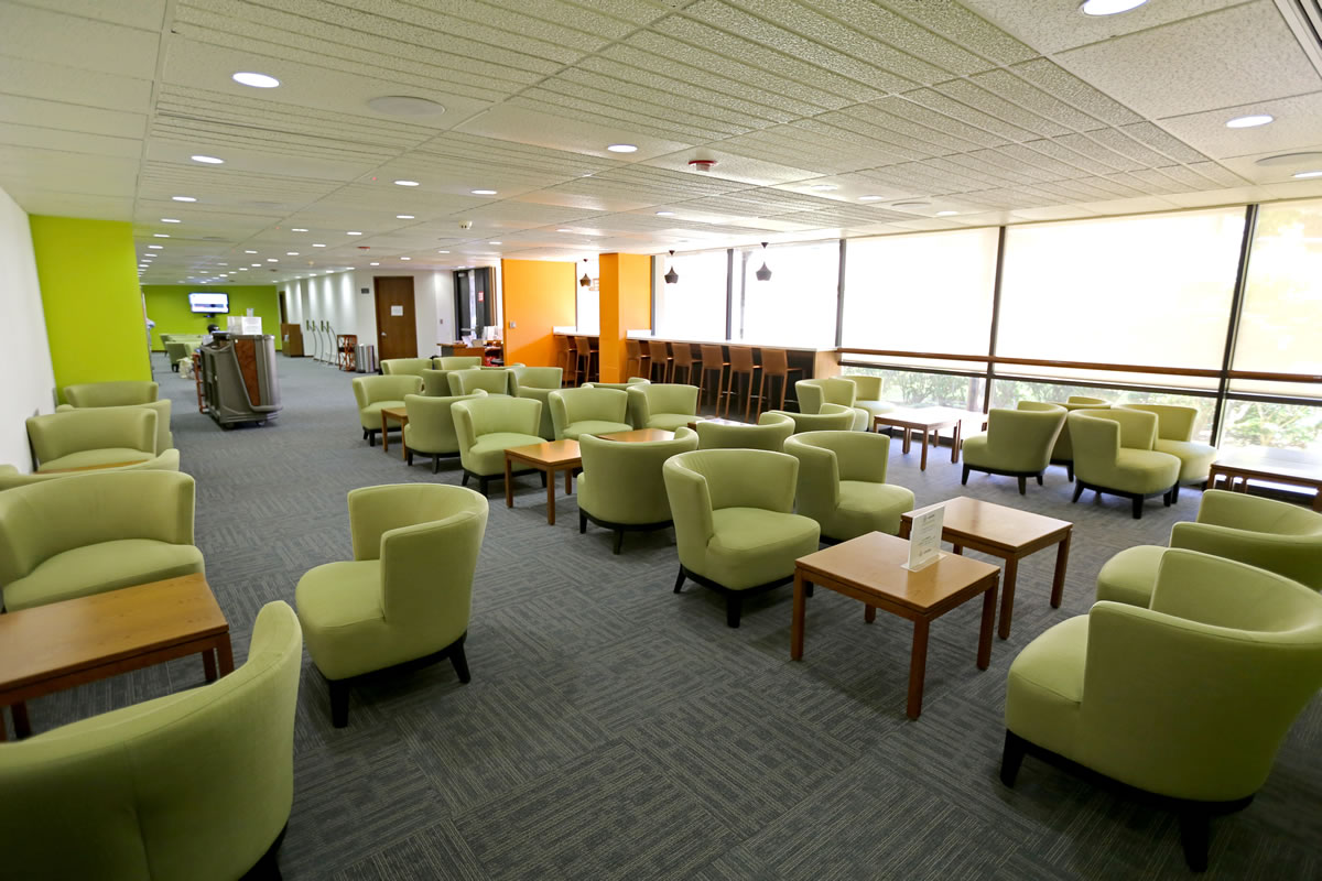 You can enjoy free snacks and drinks, WiFi, ipad station, and kids space.